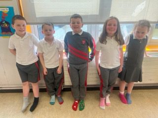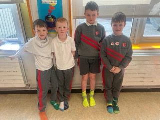 Bhí Rang 1 agus Rang 4 ag ceiliúradh Lá na Stocaí le déanaí agus bhailigh siad ós cionn €200 ar son Hub 21 agus Down Syndrome Ireland! Tháinig dearth air dune de na piste agus a mhamaí chun na scoile leis an t-airgead a bhailiú.